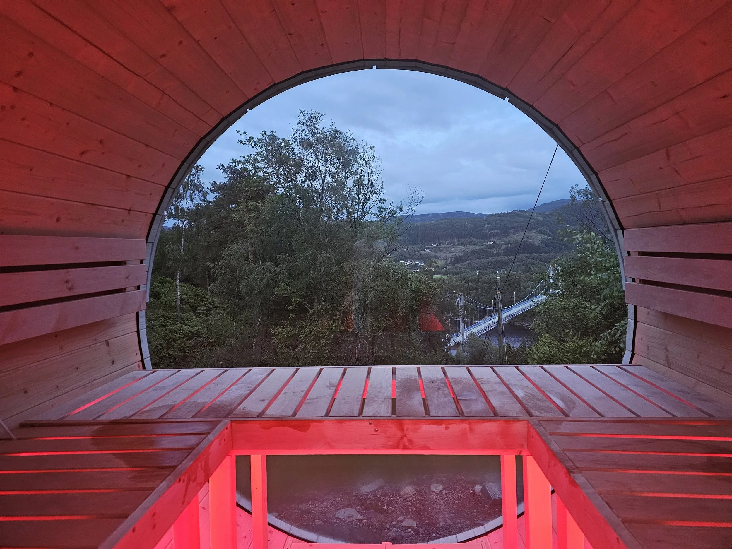Enjoy the view from our barrel sauna and jacuzzi ! open all year.